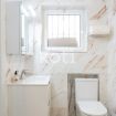 El baño, luminoso y moderno, cuenta con plato de ducha, garantizando una experiencia relajante y funcional.