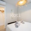 Este ático de 48 m2 con una azotea de 22,8 m2, es perfecto para parejas o familias pequeñas. Ofreciendo un dormitorio principal con una espaciosa cama de matrimonio y un amplio armario. Segundo dormitorio con cama nido, perchero y escritorio con silla para trabajar o estudiar.