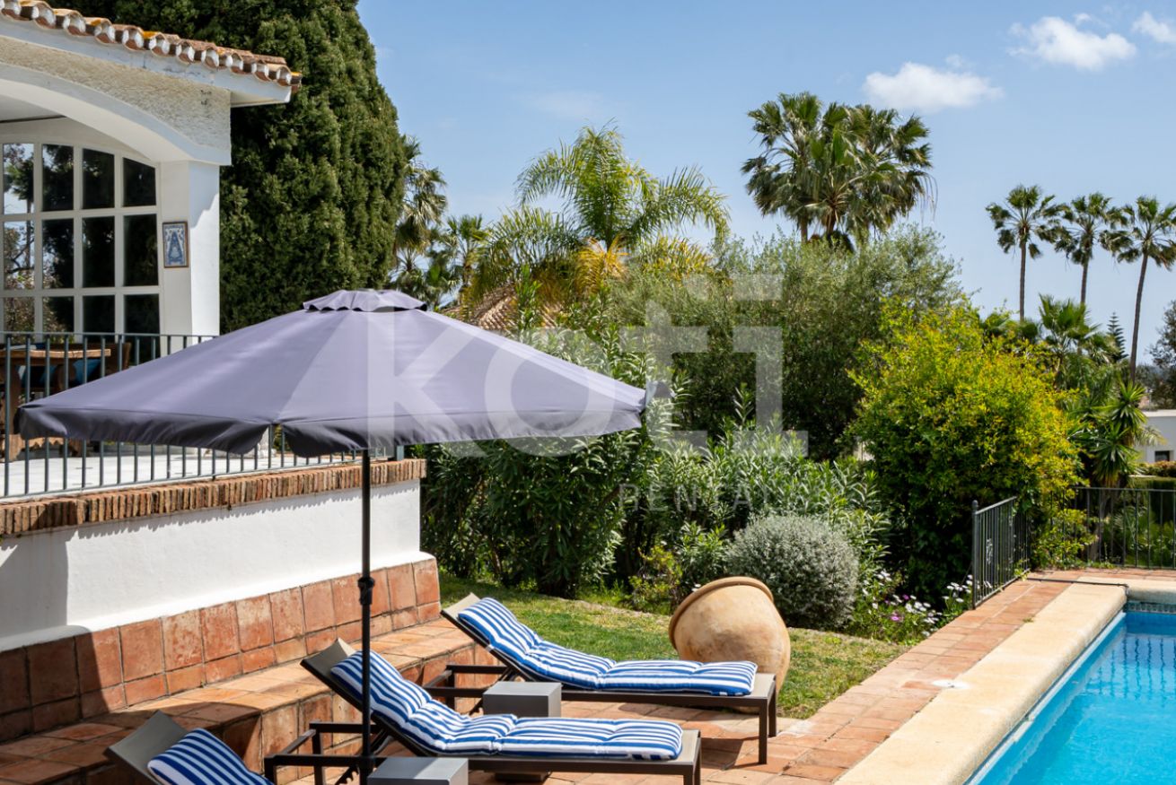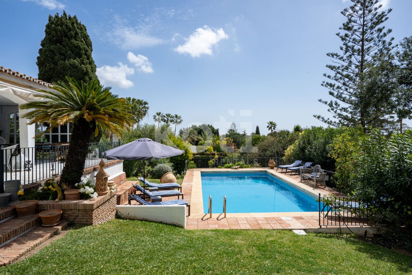 Villa Los Geranios es una acogedora villa de estilo andaluz situada en El Rosario, una de las zonas residenciales más tranquilas y mejor conectadas de Marbella. Rodeada de vegetación y con un entorno privado, es una opción ideal para quienes buscan desconectar sin renunciar a la cercanía de la ciudad, las playas y todos los servicios.